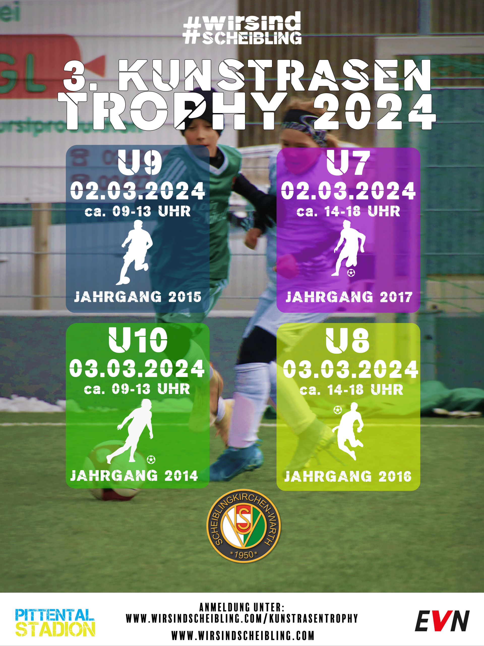 Am Wochenende findet wiedere unsere Kunstrasentrophy powered by EVN im Pittentalstadion statt. 26 Teams in den Bewerben U7-U10 duellieren sich um die begehrte Pele-Trophäe. Kommt vorbei und erlebt tollen Nachwuchssport. Für das leibliche Wohl sorgt wie gewohnt unsere Kantinencrew! #wirsindscheibling #immerweiter